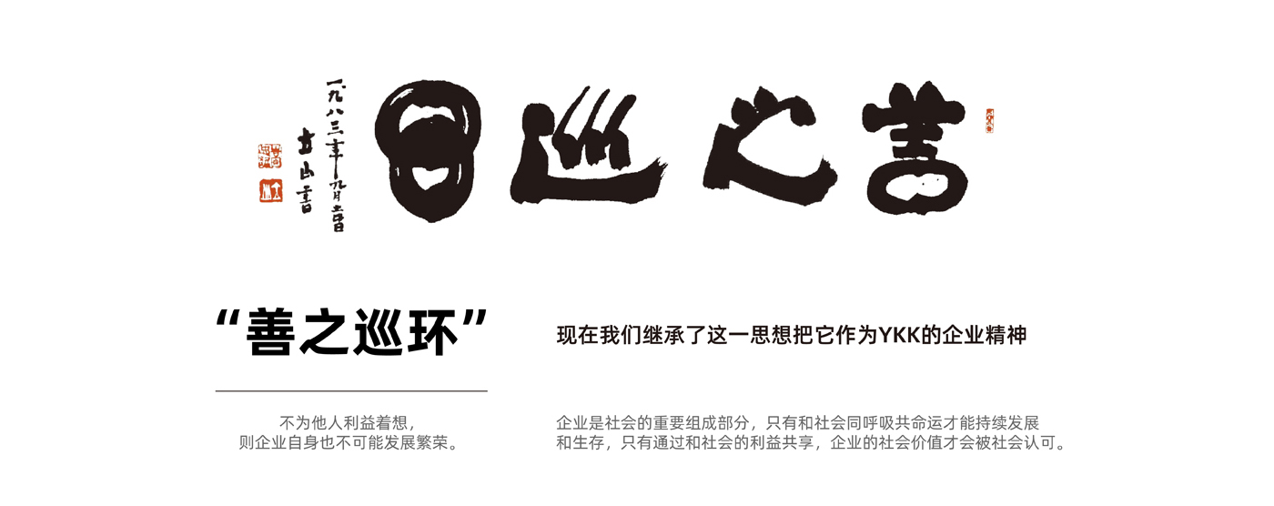 YKK的創(chuàng)始人吉田忠雄在推進(jìn)事業(yè)發(fā)展時(shí)最為關(guān)心和重視這一精神,時(shí)刻考慮的是企業(yè)和社會(huì)的和諧發(fā)展。這一精神具體體現(xiàn)于在企業(yè)經(jīng)營活動(dòng)中對(duì)發(fā)明創(chuàng)造狠下功夫,通過不斷創(chuàng)造新 的價(jià)值來推進(jìn)企業(yè)的發(fā)展,造福消費(fèi)者,和事業(yè)伙伴實(shí)現(xiàn)雙贏,為社會(huì)做出貢獻(xiàn)。