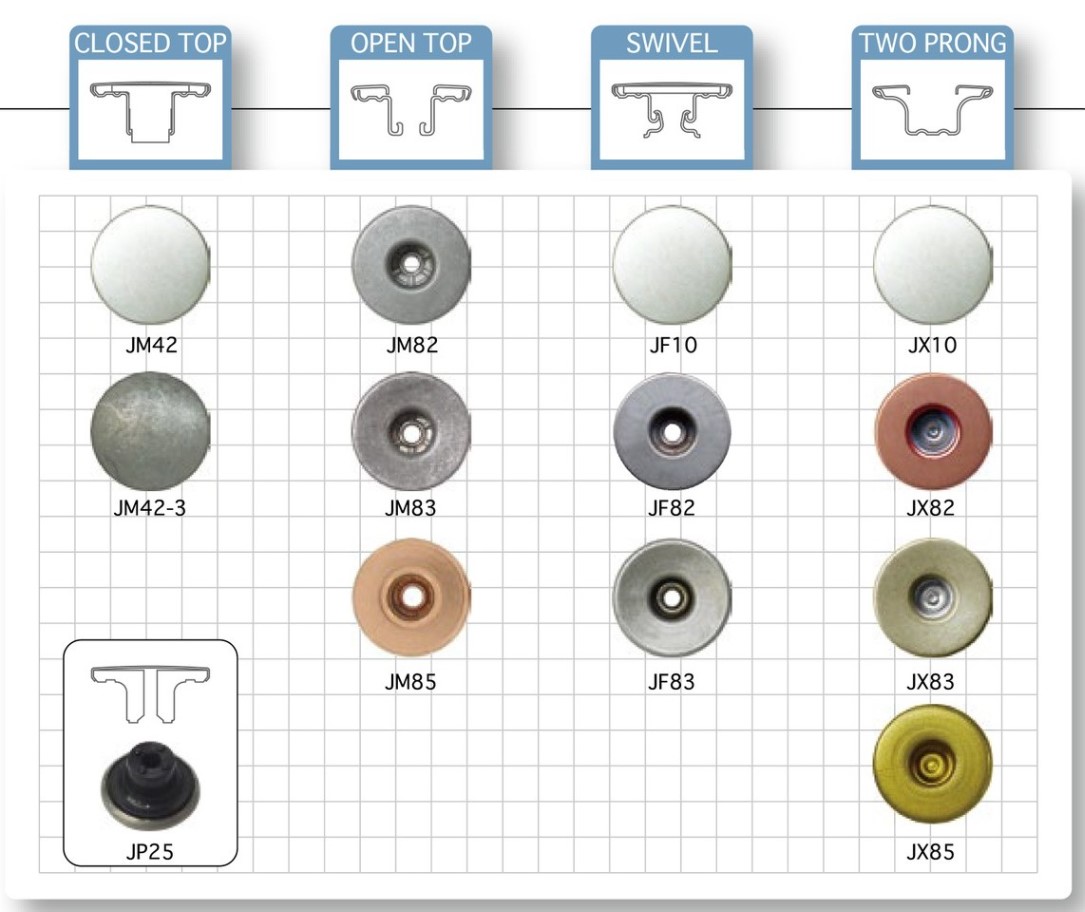 3.所有應(yīng)用皆需由YKK技術(shù)應(yīng)用專家確認(rèn)。裝釘品質(zhì)取決于裝鈕機(jī).YKK建議使用YKK專用模具和裝鈕機(jī)裝釘YKK產(chǎn)品。